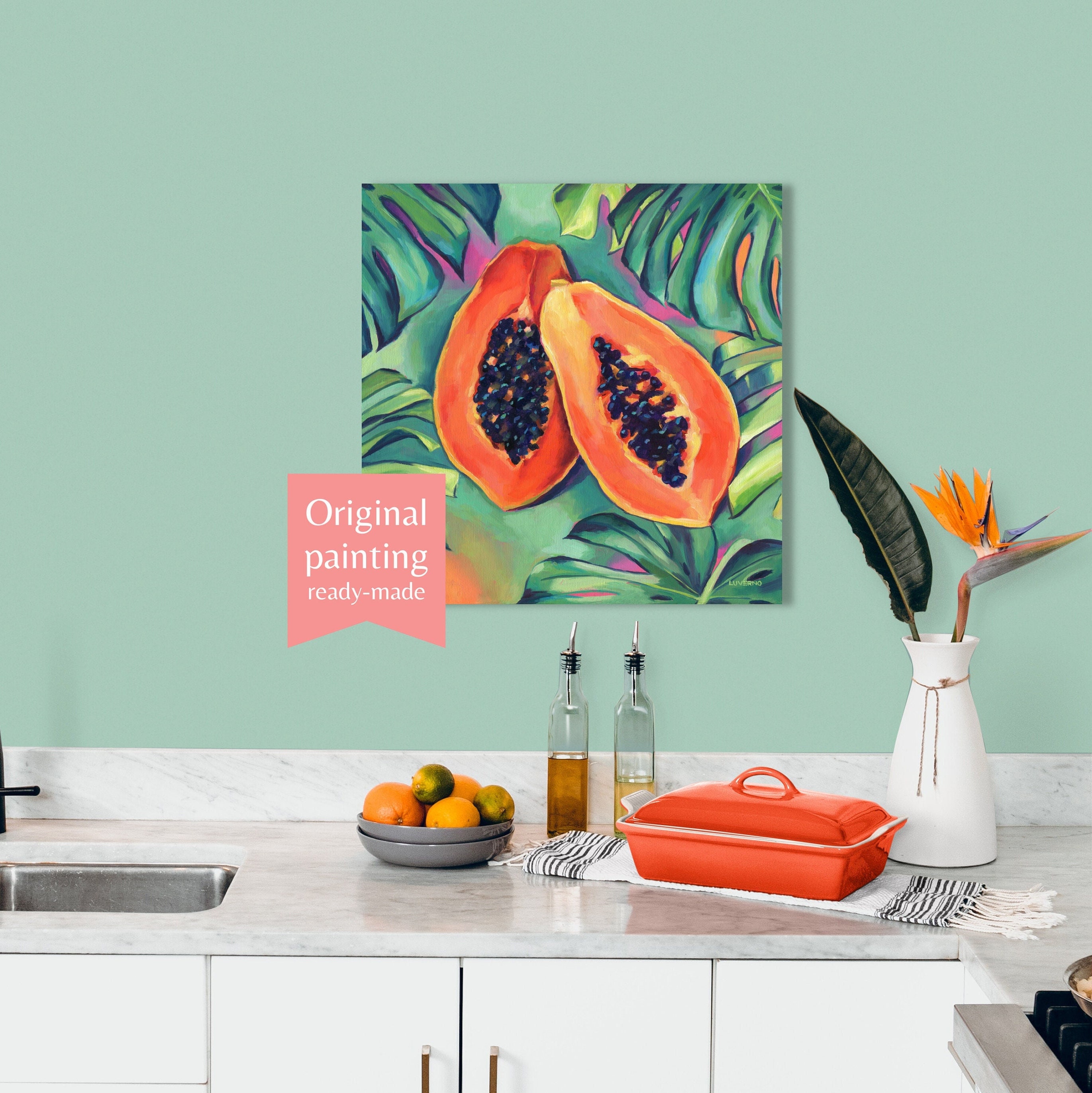 Papaya Painting Original Tropical Fruit Still Life Art Etsy Uk